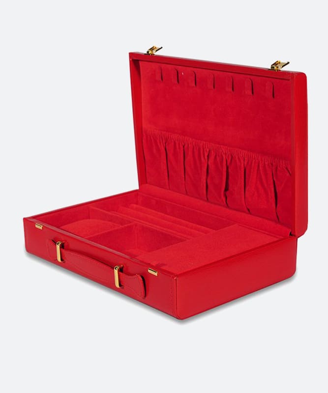 จิวเวลรี่เคส รุ่น No. 3015SK เป็นเคสเครื่องประดับขนาดใหญ่ รูปทรงเหลี่ยมแบบกระเป๋าเก็บเอกสาร พร้อมตัวล็อค สามารถเก็บเครื่องประดับได้มากขึ้น และยังเคลื่อนย้ายสะดวก รูปทรง และการจัดสัดส่วนของช่องเก็บเครื่องประดับภายในเคสถูกออกแบบมาเพื่อให้ท่านมั่นใจได้ว่า สามารถเก็บเครื่องประดับได้อย่างเป็นระเบียบและปลอดภัยระหว่างการขนส่ง